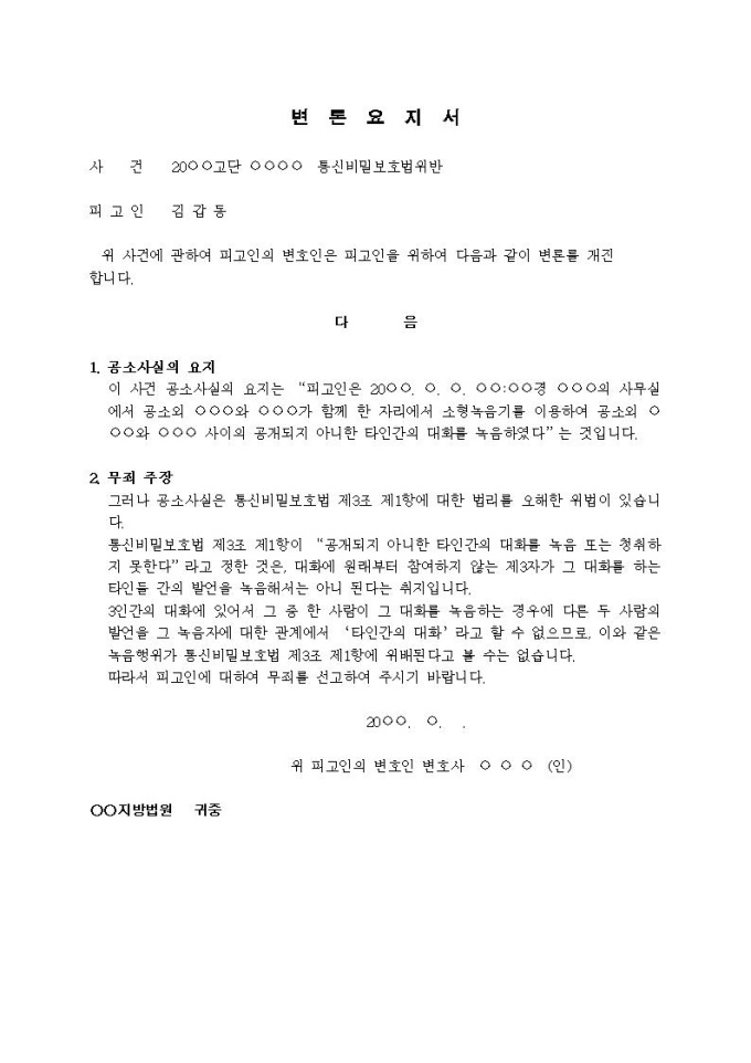 9,000원/월변론요지서(5) (통신비밀보호법위반)입니다.