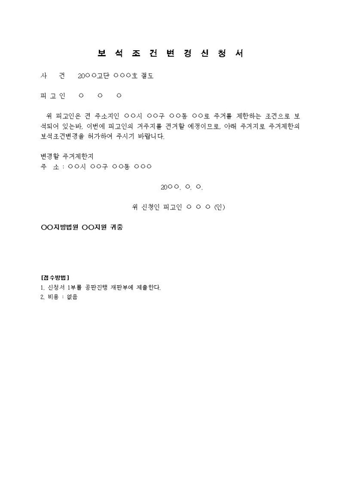 9,000원/월보석조건변경신청서(2)입니다.