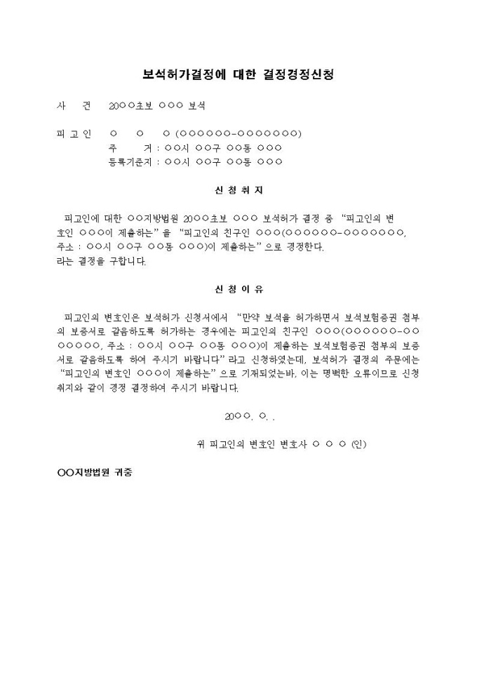 9,000원/월보석허가결정에 대한 결정경정신청서입니다.