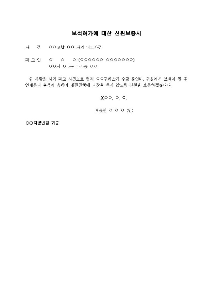 9,000원/월보석허가에 대한 신원보증서입니다.