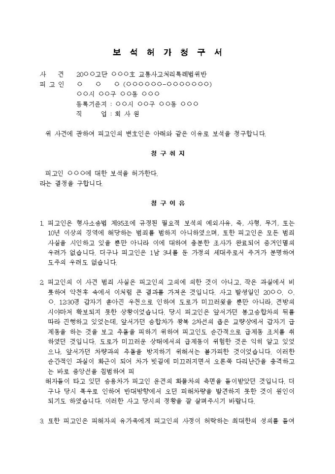 9,000원/월보석허가청구서(5)입니다.