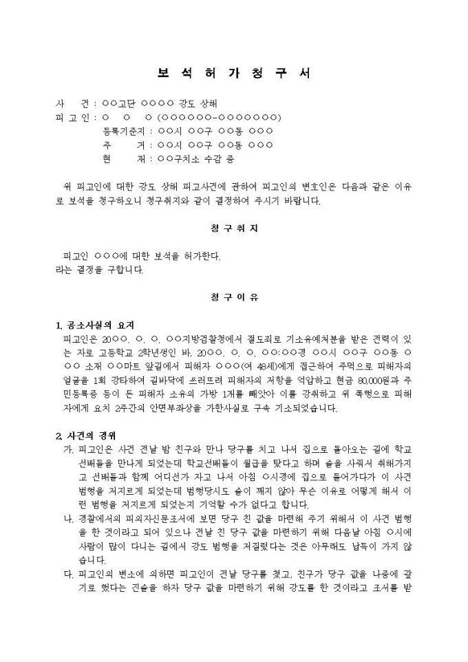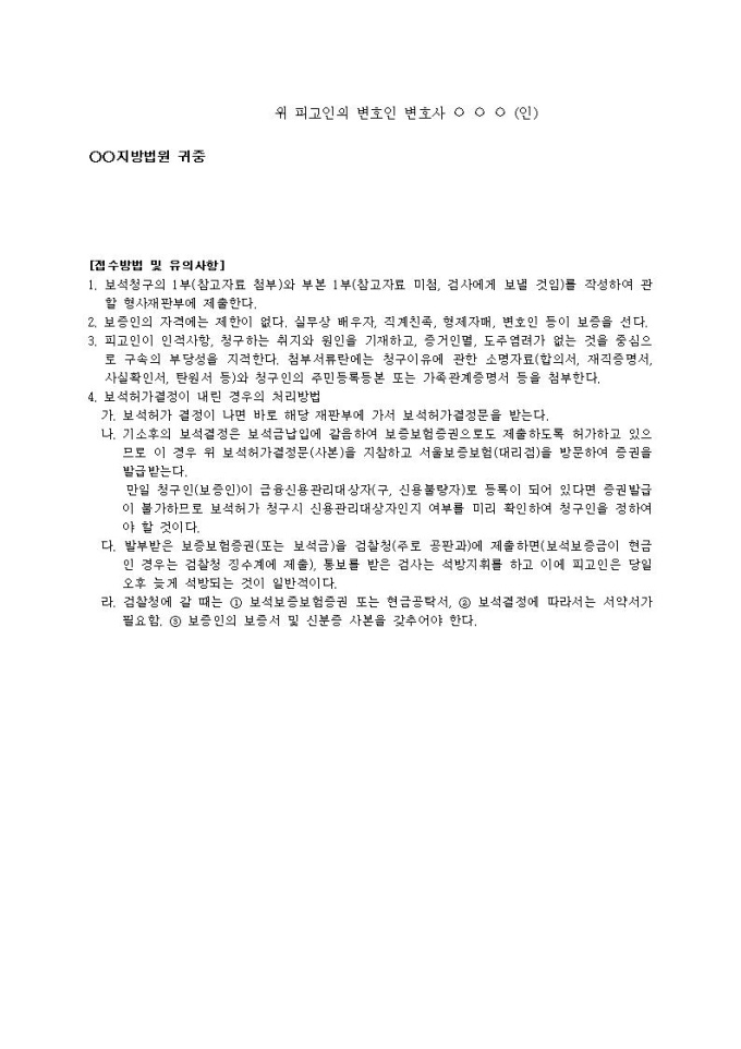 9,000원/월보석허가청구서(8)입니다.