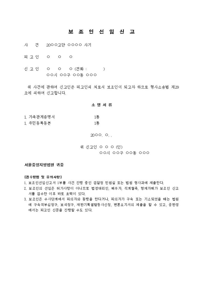 9,000원/월보조인선임신고서(1)(사기)입니다.