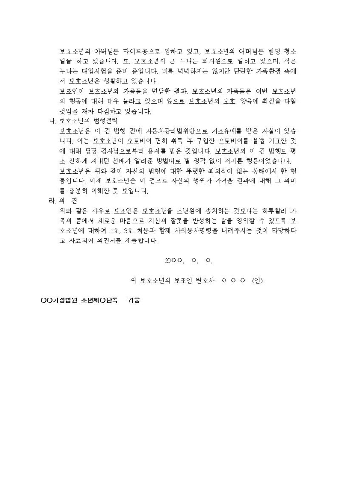 보조인의견서