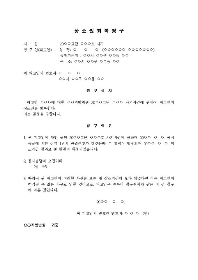 상소권회복청구서(3)입니다.