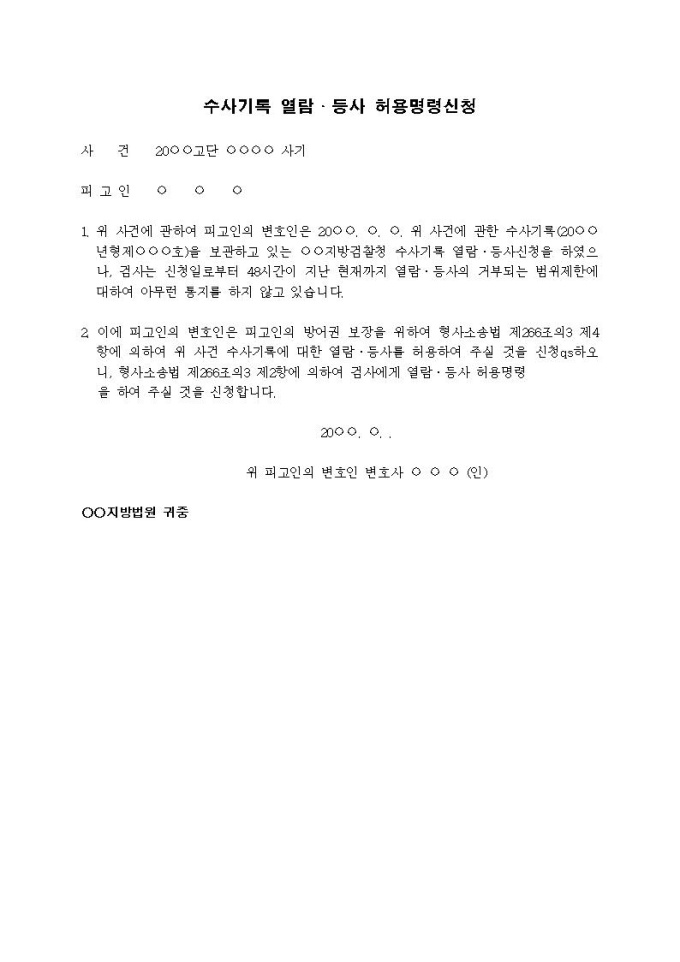 수사기록 열람·등사 허용명령신청서(2)입니다.