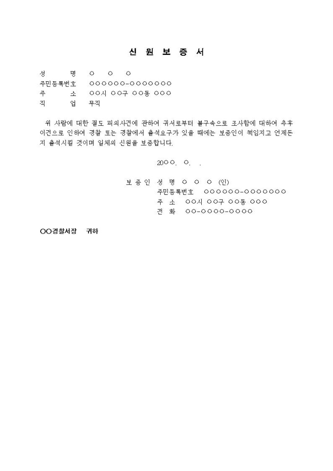9,000원/월신원보증서입니다.