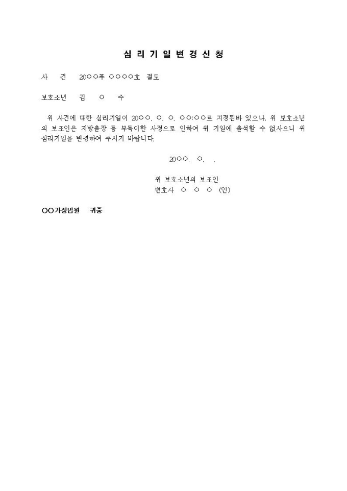 9,000원/월심리기일변경신청서입니다.