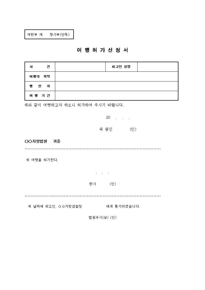 여행허가신청서