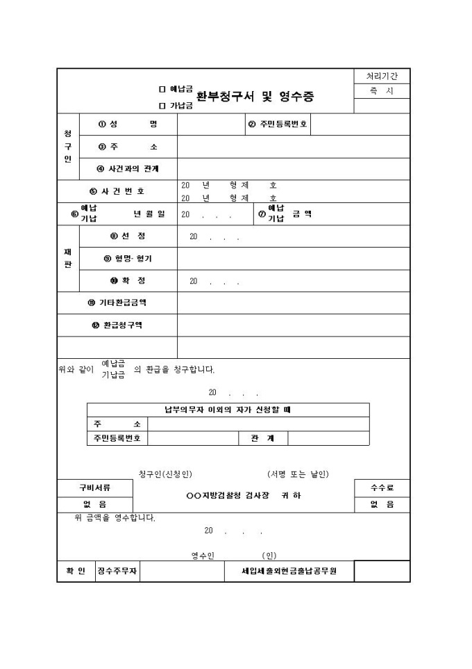 9,000원/월예납금·가납금 환부청구서 및 영수증입니다.
