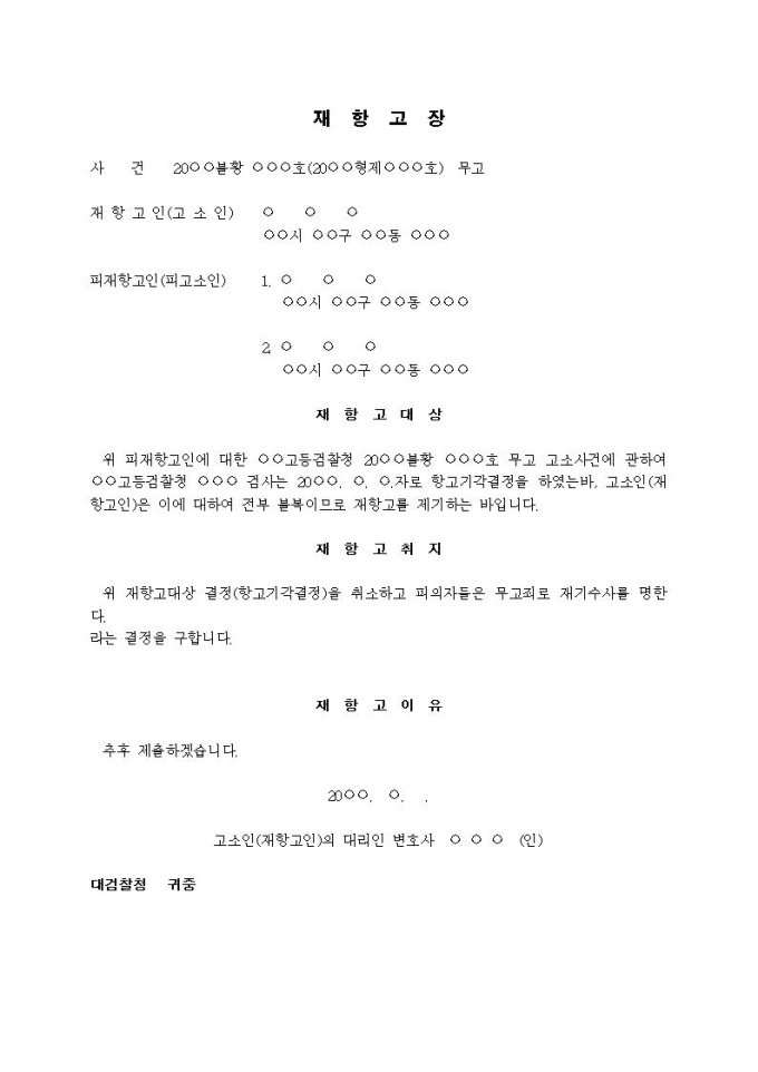 재항고장(항고기각결정에 대한 불복)