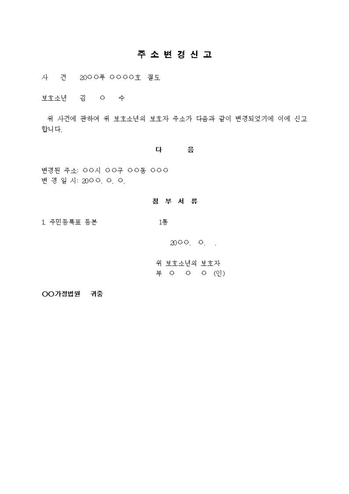주소변경신고서(1)입니다.