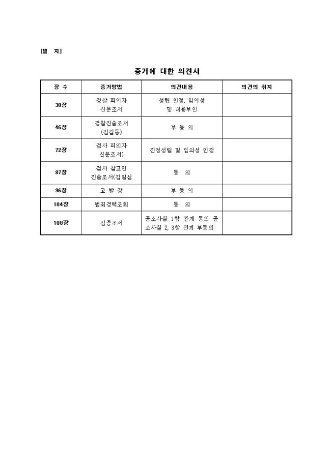 증거에 대한 의견서(2) (증거인부)_별지포함입니다.