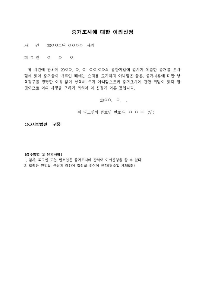 9,000원/월증거조사에 대한 이의신청서입니다.