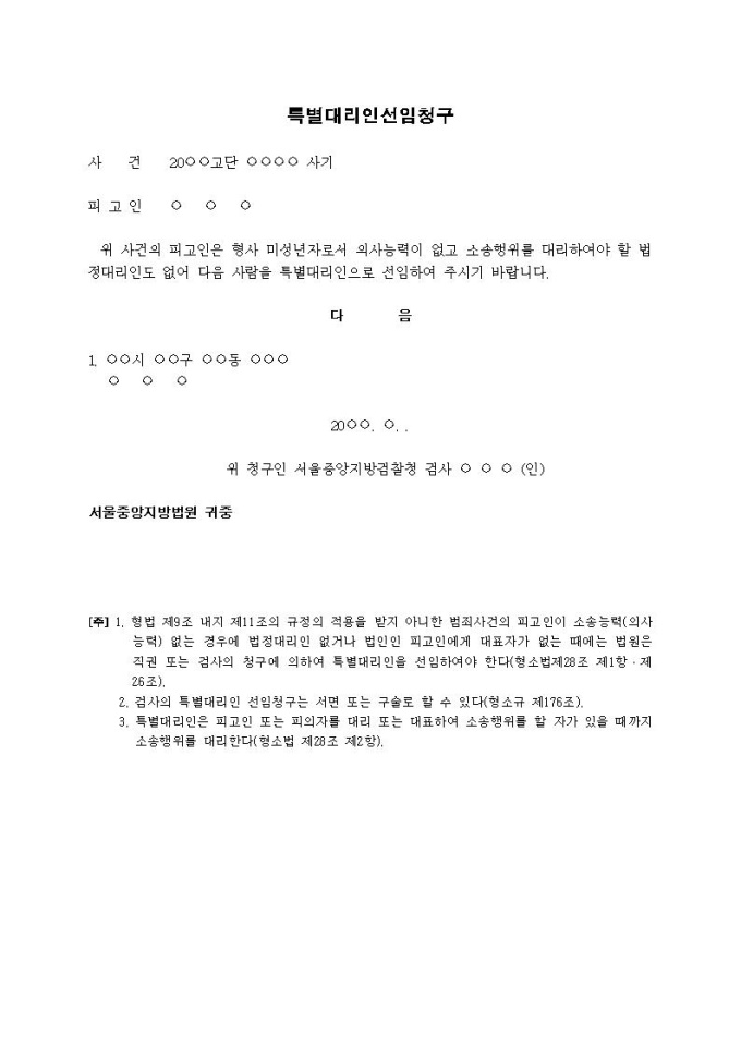 9,000원/월특별대리인선임청구서(1) (검사가 청구하는 경우)입니다.