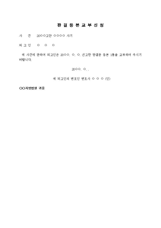9,000원/월판결등본교부신청서입니다.