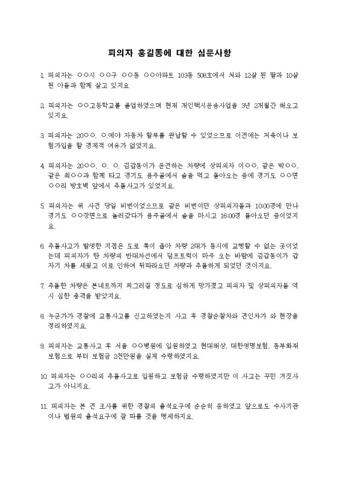 9,000원/월피의자에 대한 심문사항(보험사기)입니다.