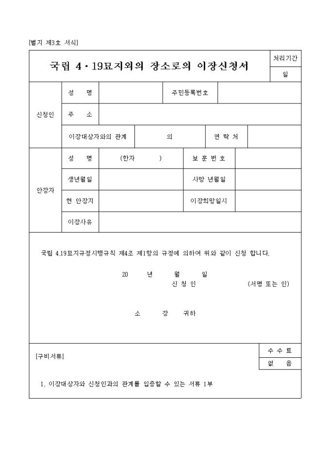 국립4, 19묘지외의장소로의이장신청서