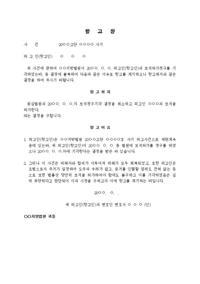 9,000원/월항고장(1) (보석허가청구기각)입니다.