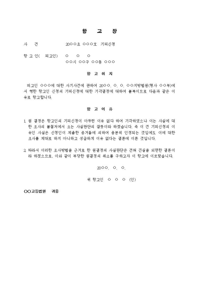 9,000원/월항고장(기피신청기각결정에 대한)입니다.