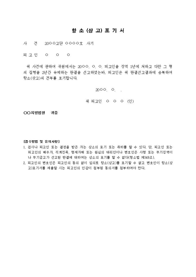 9,000원/월항소(상고)포기서(2)입니다.