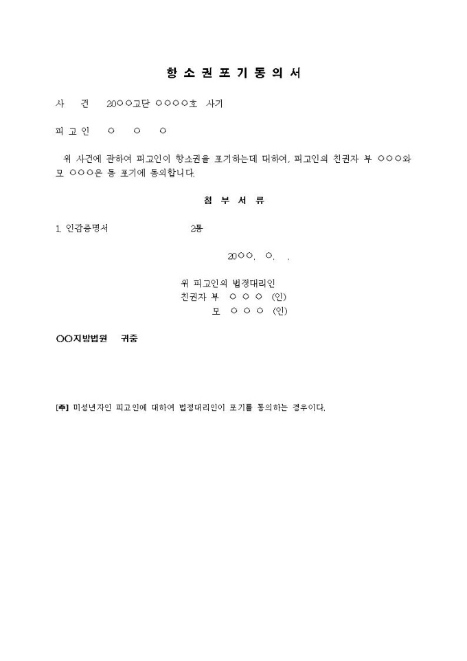 9,000원/월항소권포기동의서입니다.