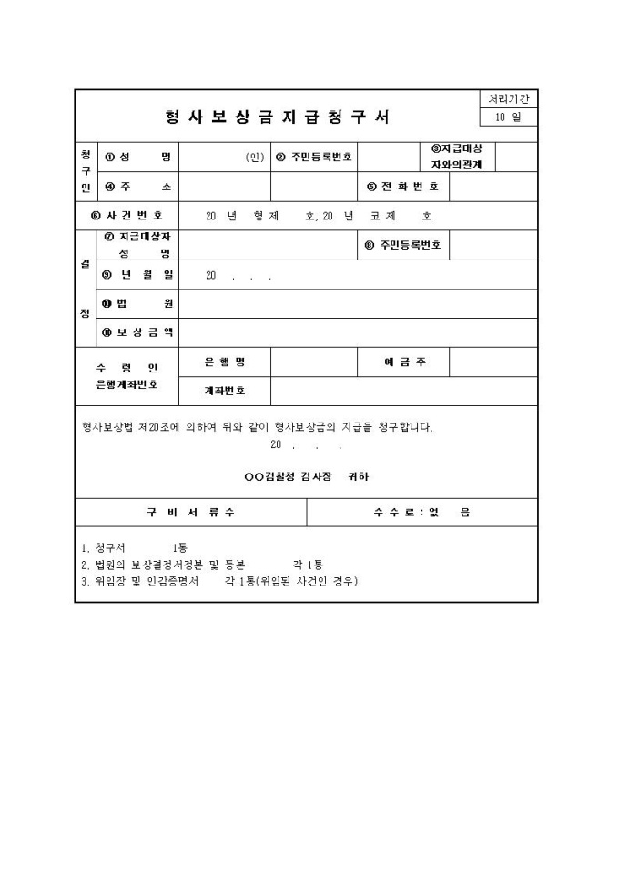 형사보상금지급청구서