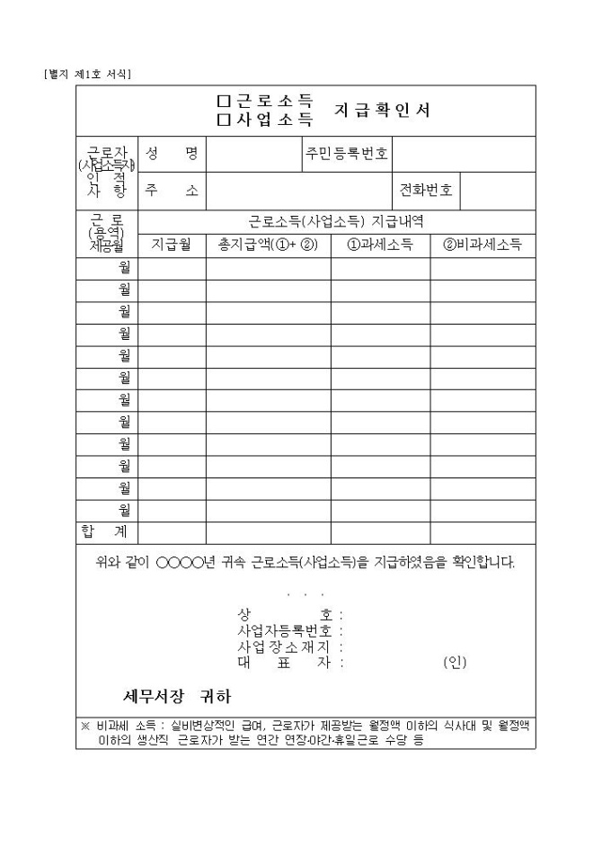 (근로소득, 사업소득) 지급확인서(일부개정 2012.3.4)