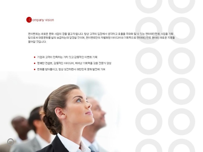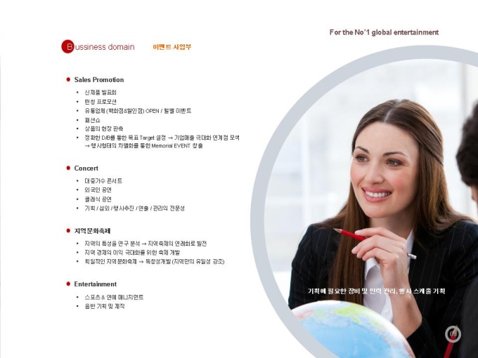 엔터테인먼트, 방송, 이벤트 분야의 2번째 프리미엄 파워포인트 디자인입니다. 제안서, 회사소개서, 기획서용 파워포인트 디자인으로 샘플 내용은 표준 회사소개서의 목차에 맞게 제작되었습니다.기존PPT와 차별화된 고급스러운 디자인이 필요할때! 높은 품질에 저렴한 가격! 포토샵을 못해도 누구나 고급스러운 디자인과 편리함을 이용하실 수 있습니다.