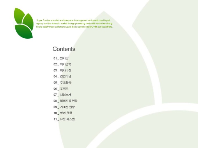 [식품가공, 유통9 파워포인트 디자인(제안서, 회사소개서, 기획서, 브로슈어, 상품소개서 디자인)]