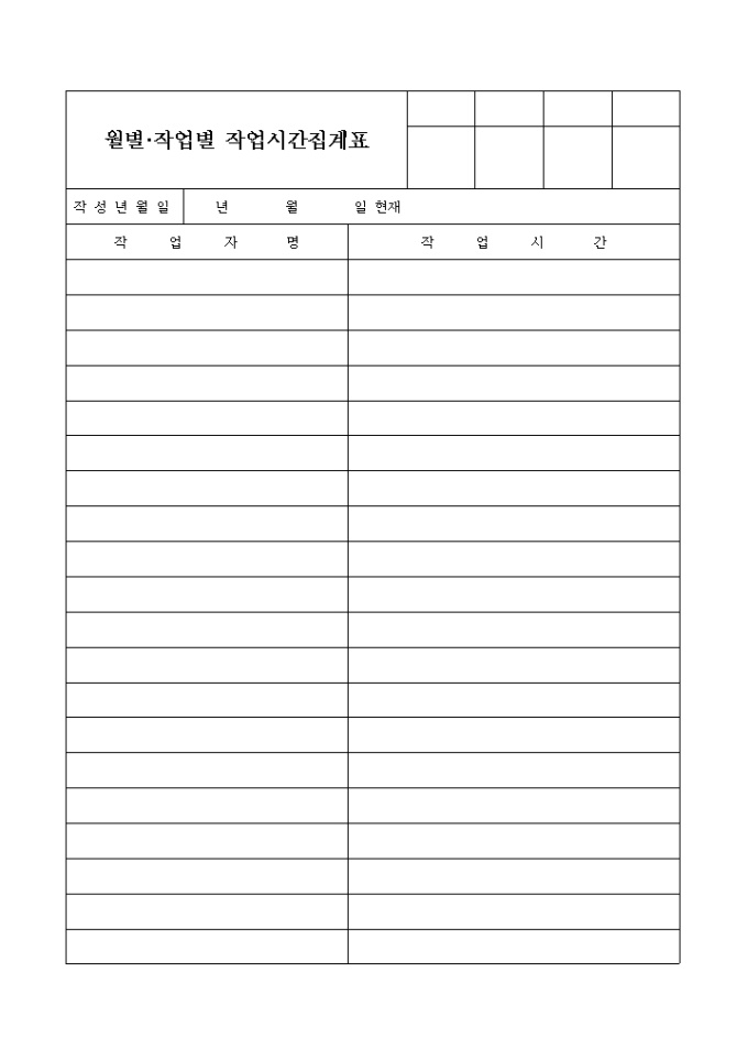 9,000원/월월별.작업별 작업시간집계표 양식입니다.