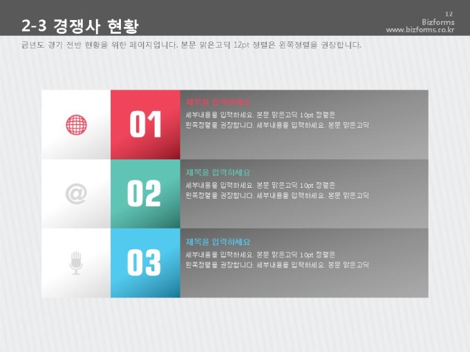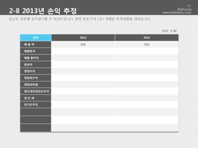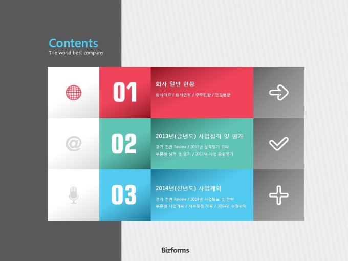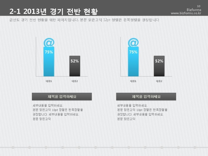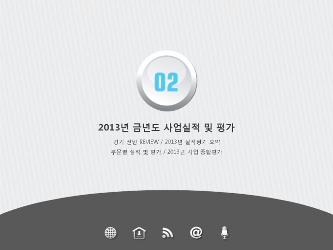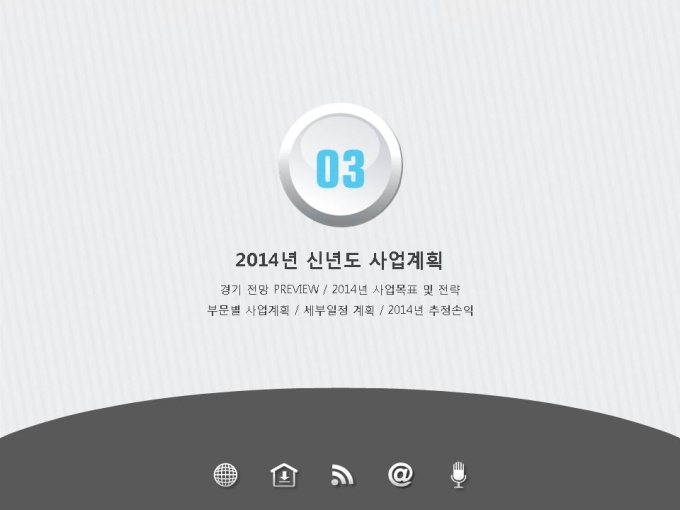표준 신년도 사업계획서는 파워포인트2007버전(pptx) 이상에서 최적화 되어 있으며, 2003버전(ppt)에서는 일부 사용이 제한됩니다.