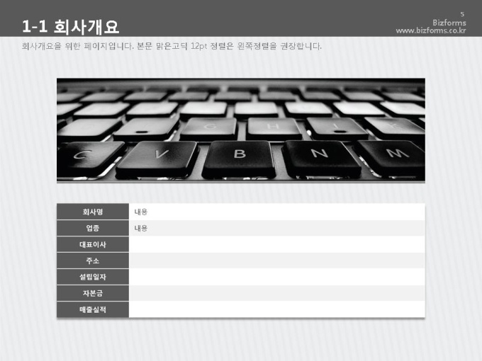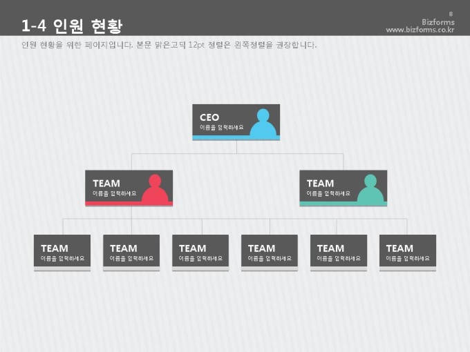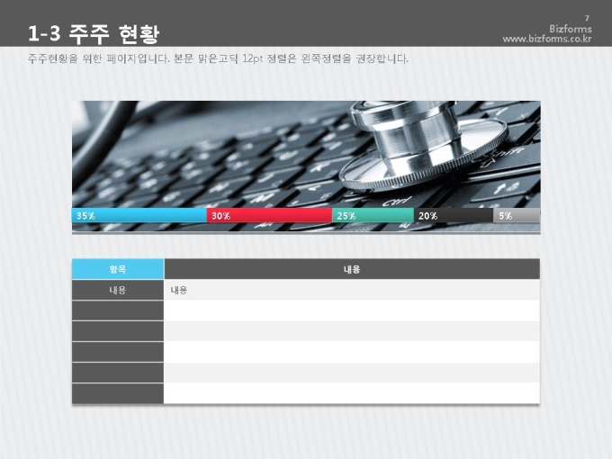 어느 분야에도 적용이 되는 표준 목차 및 전문가 조언, 한눈에 보여주는 원페이지 요약본, 숫자만 입력하면 자동 완성되는 자동차트, 프레젠테이션에 활용 할 수 있는 이미지소스가 포함되어 있습니다.
