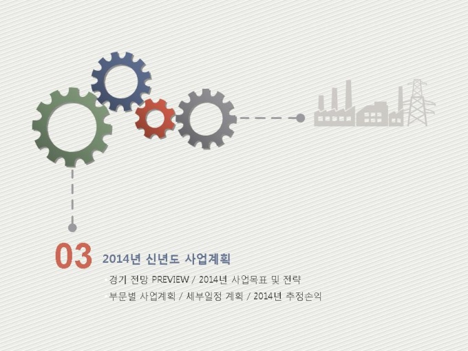 표준 신년도 사업계획서는 파워포인트2007버전(pptx) 이상에서 최적화 되어 있으며, 2003버전(ppt)에서는 일부 사용이 제한됩니다.