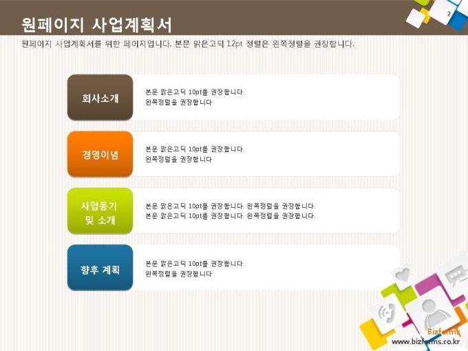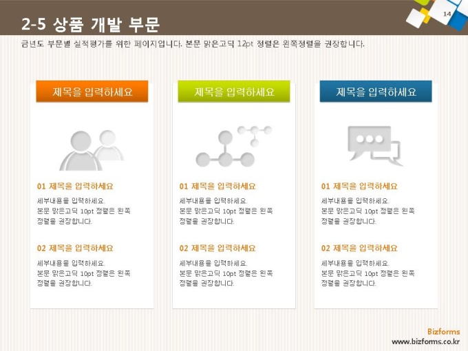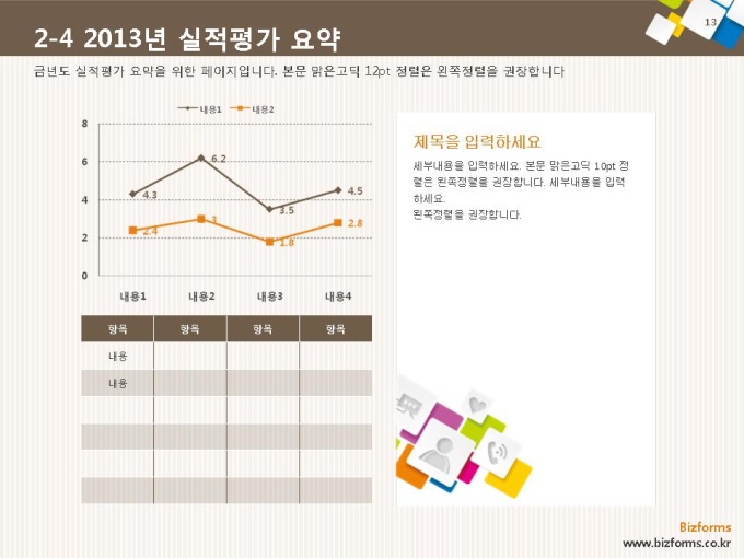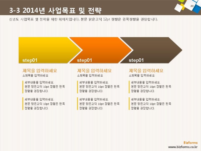표준 신년도 사업계획서는 파워포인트2007버전(pptx) 이상에서 최적화 되어 있으며, 2003버전(ppt)에서는 일부 사용이 제한됩니다.