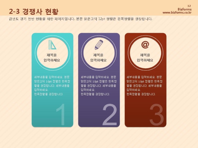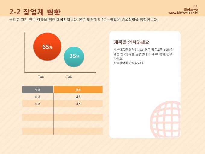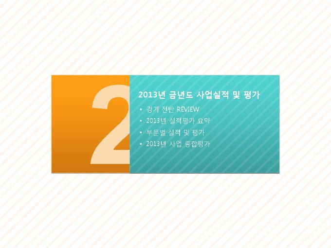 표준 신년도 사업계획서는 파워포인트2007버전(pptx) 이상에서 최적화 되어 있으며, 2003버전(ppt)에서는 일부 사용이 제한됩니다.