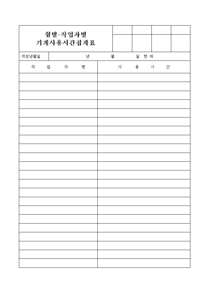 작업자별 기계사용시간을 집계하시는 양식입니다.
