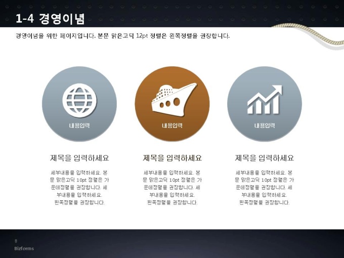경영이념을 시장의 흐름에 발맞추어 설정한다면 보다 적극적인 모습을 보여줄 수 있습니다.