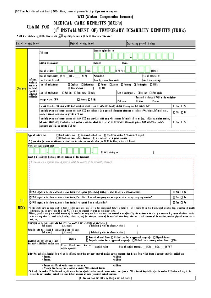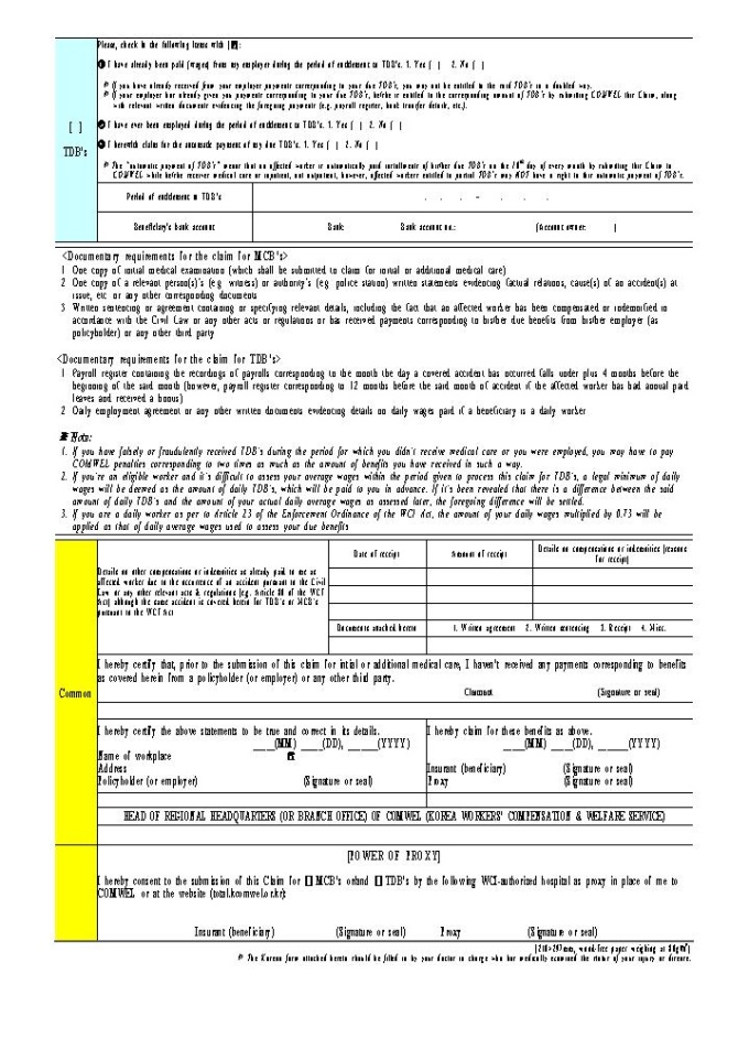요양급여및휴업급여(최초분)신청(청구서)_english입니다. * 출처 : 근로복지공단(http://www.kcomwel.or.kr)