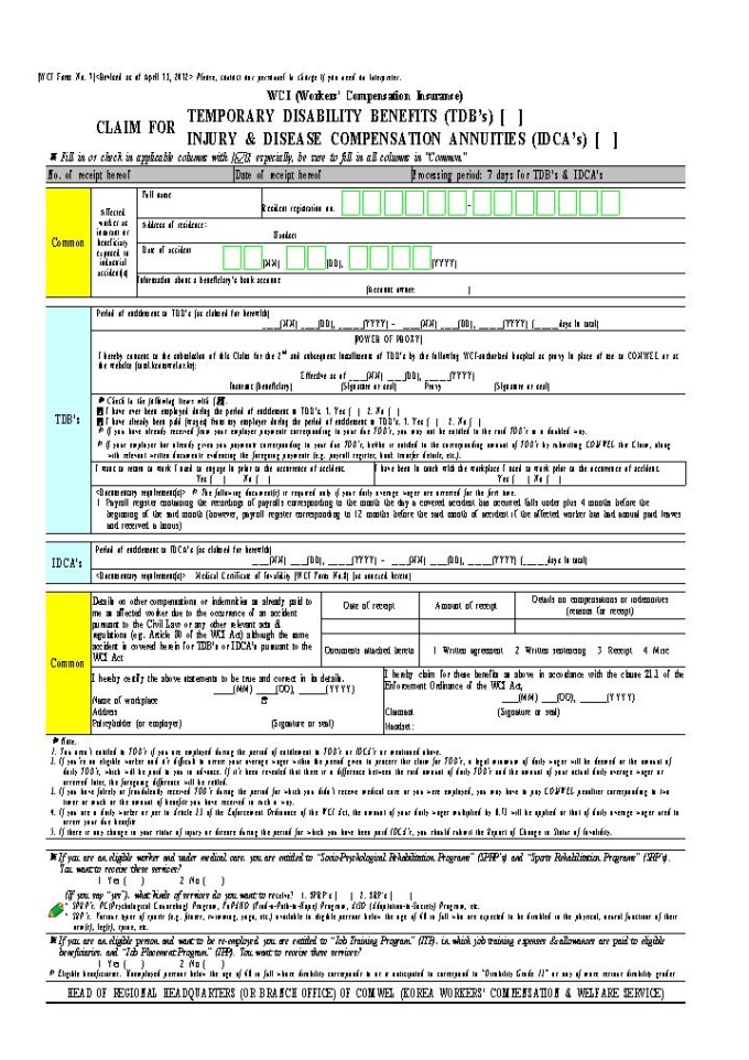 휴업급여,상병보상연금청구서_english입니다. * 출처 : 근로복지공단(http://www.kcomwel.or.kr)
