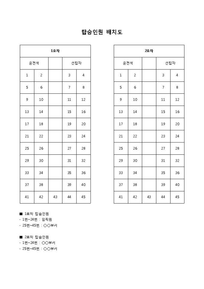 워크샵 차량 배치도입니다. 탑승인원 현황 및 배치를 한 눈에 파악할 수 있습니다.