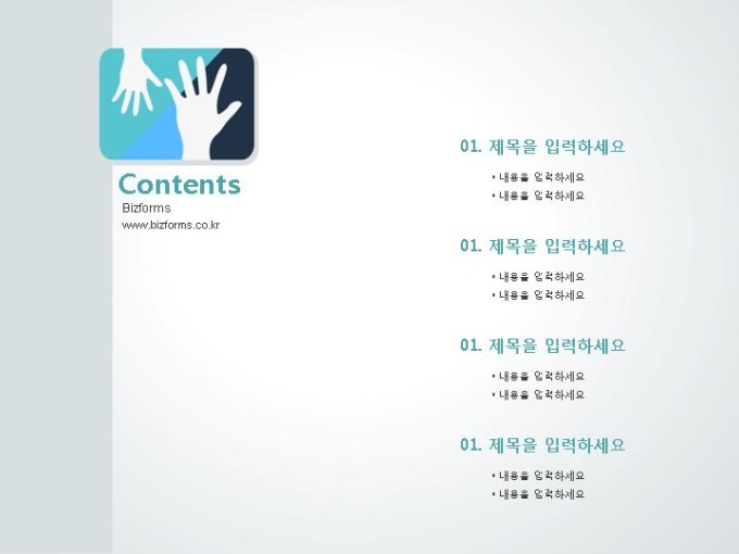 파워포인트배경(푸른사각형과 화합)입니다. 표지, 목차, 내지, 끝표지로 구성되어 있습니다.