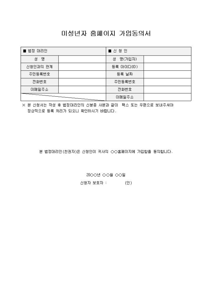 미성년자 홈페이지 가입동의서