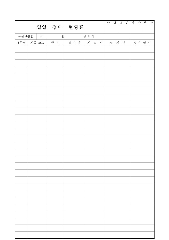 일접수현황표2 양식입니다.