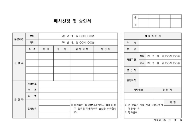 배차신청 및 승인서