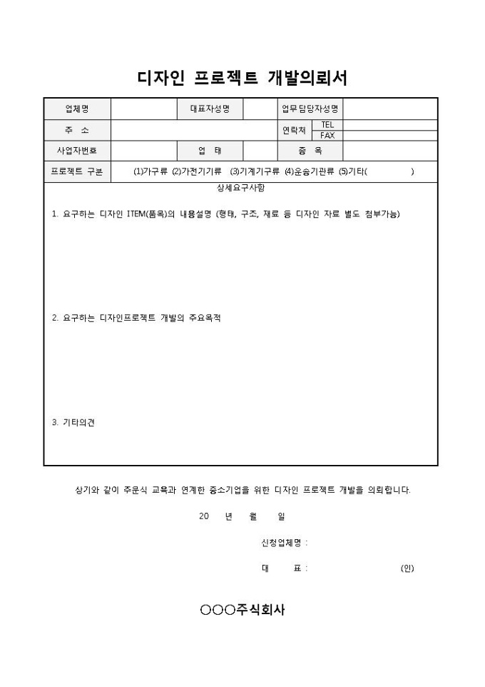 디자인 프로젝트 개발의뢰서