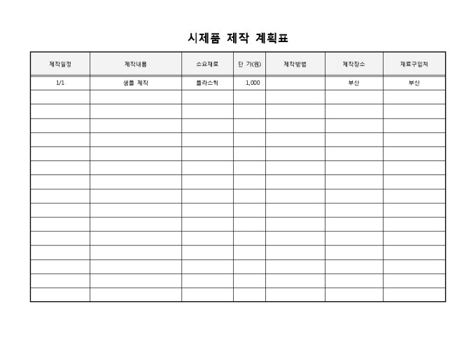 시제품제작계획표