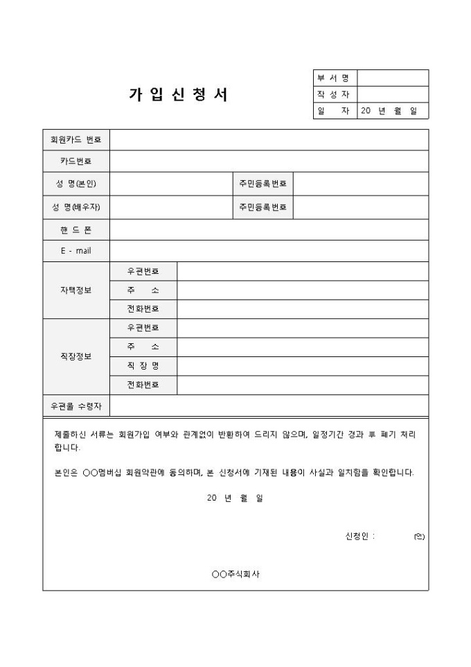 가입신청서(멤버쉽)