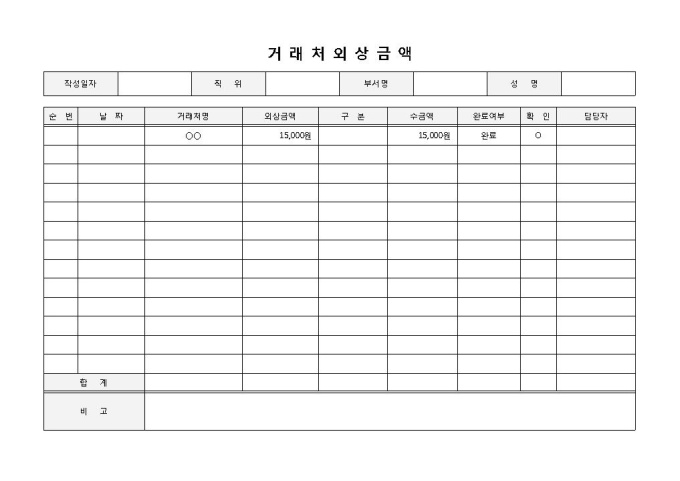 거래처대장(외상금액)
