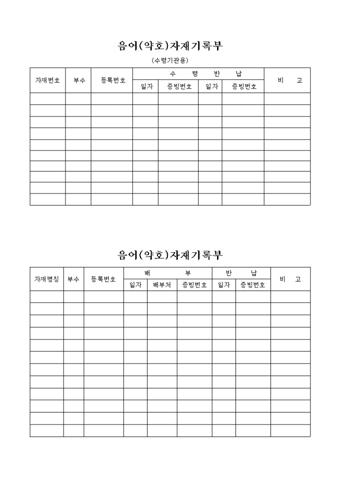 음어(약호) 자재기록부
